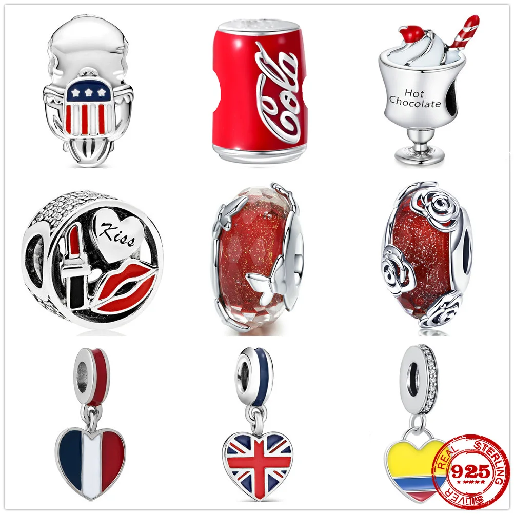 Лидер продаж 100% натуральная 925 пробы серебро красное вино кружка любящее сердце формы, очаровательный, подрходит к оригиналу Pandora, браслеты и бр