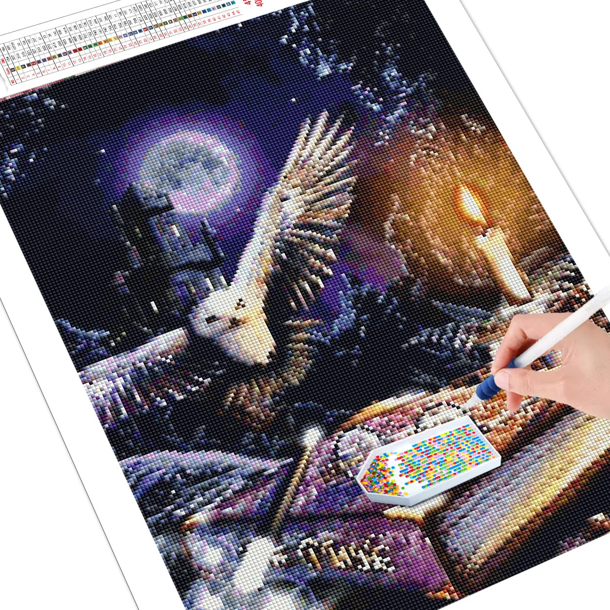 Алмазная живопись AZQSD с квадратнымикруглыми сверлами, мозаика с совой, алмазная вышивка с Луной, 5D, Набор для вышивки крестиком для домашнего декора сделай сам