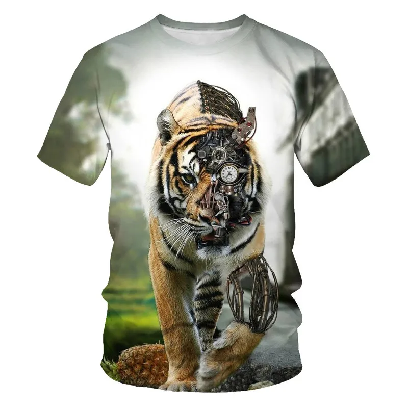 Летняя футболка с 3D-принтом тигра, льва для мужчин и женщин, удобн...
