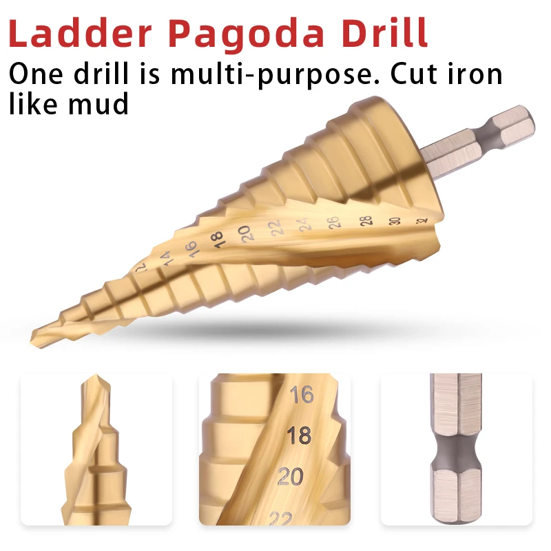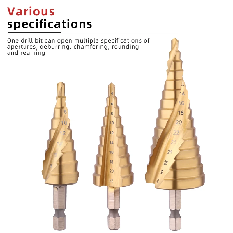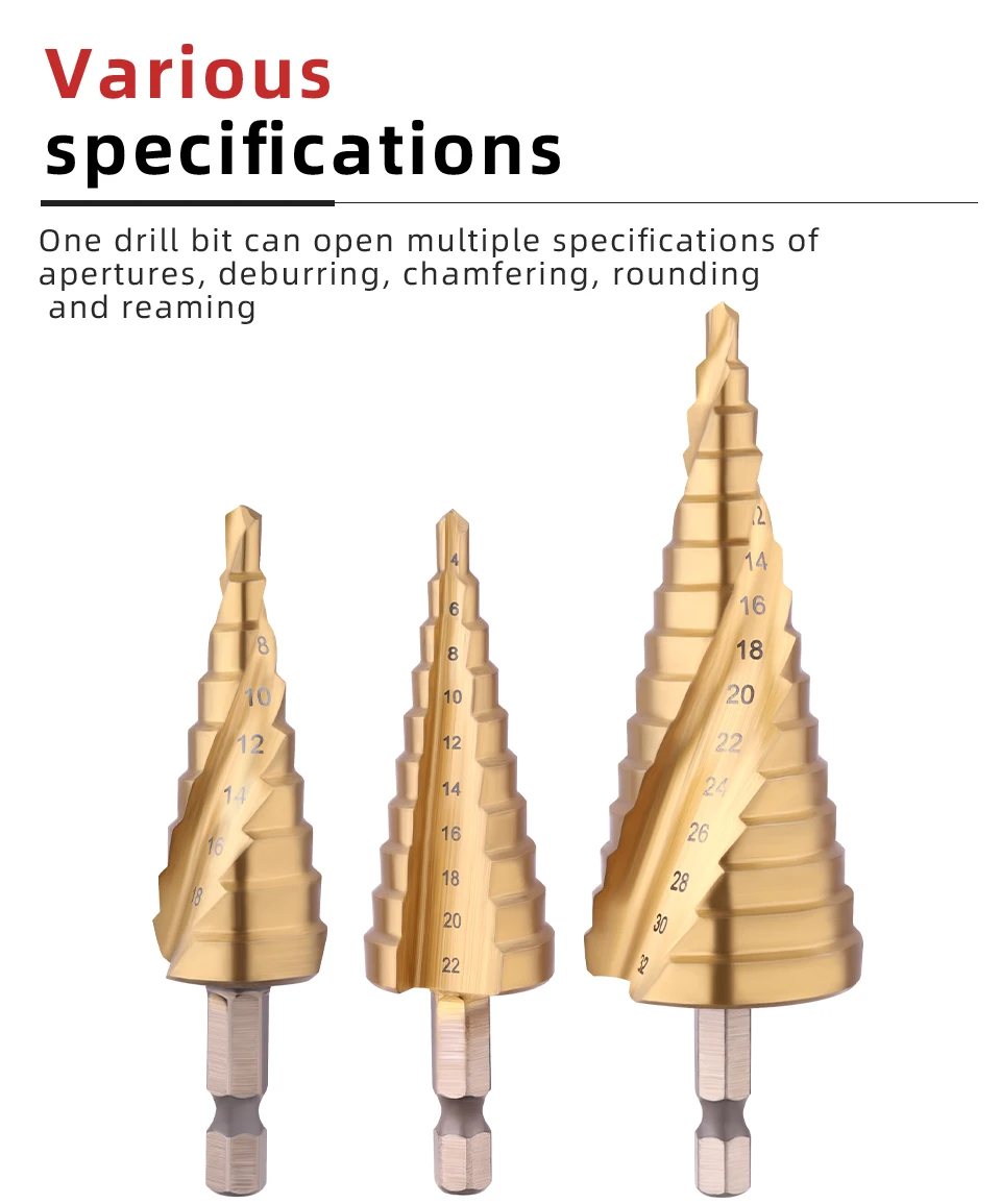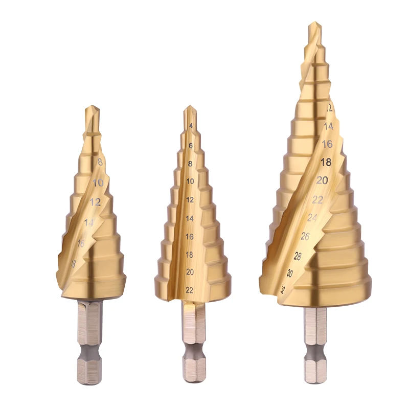 Ступенчатые сверла из быстрорежущей стали с титановым покрытием для дерева и металла, набор из 3 насадок 4-12 мм 4-20 мм 4-32 мм, для корончатого сверления отверстий