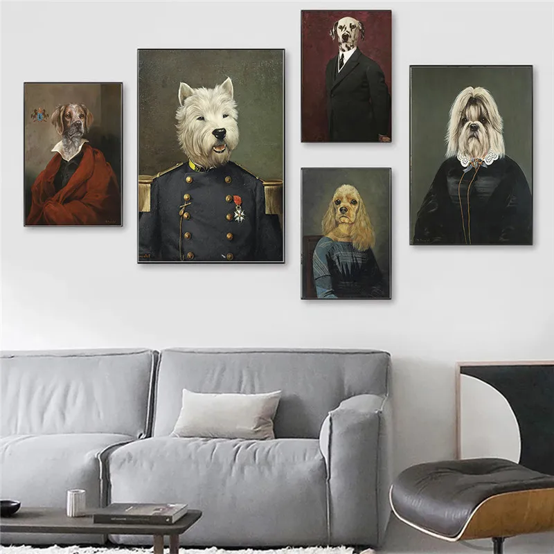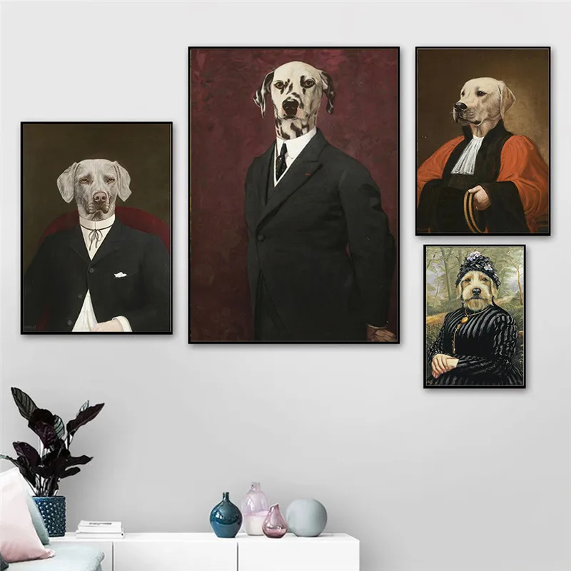 Винтажный художественный постер в стиле ретро с изображением собак и животных, Женская картина маслом с изображением животных для гостиной, Декор
