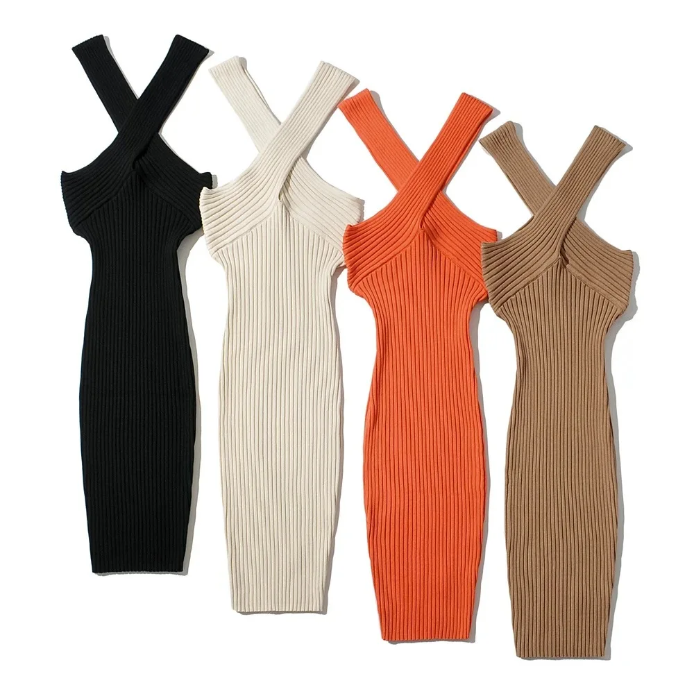 Трикотажное женское платье, летнее элегантное платье мини без рукавов, однотонное обтягивающее платье, черное бежевое, оранжевое