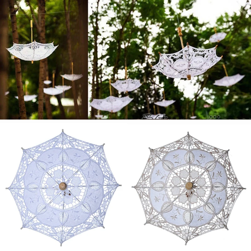 Новый свадебный кружевной зонт, хлопковый зонтик с вышивкой для невесты, белый, бежевый зонтик от солнца для свадебного декора, фотография