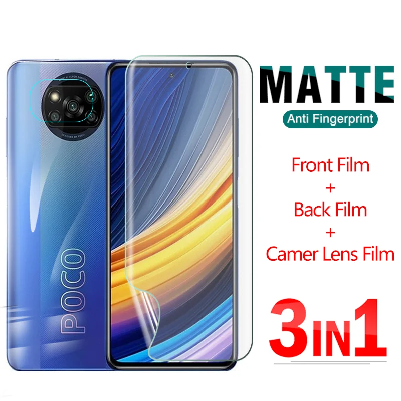 3-в-1 матовая Гидрогелевая пленка Передняя Задняя крышка объектива для Xiaomi Poco X3 F3 M3 NFC Pro защита экрана полное покрытие на PocoX3 PocoM3 PocoF3