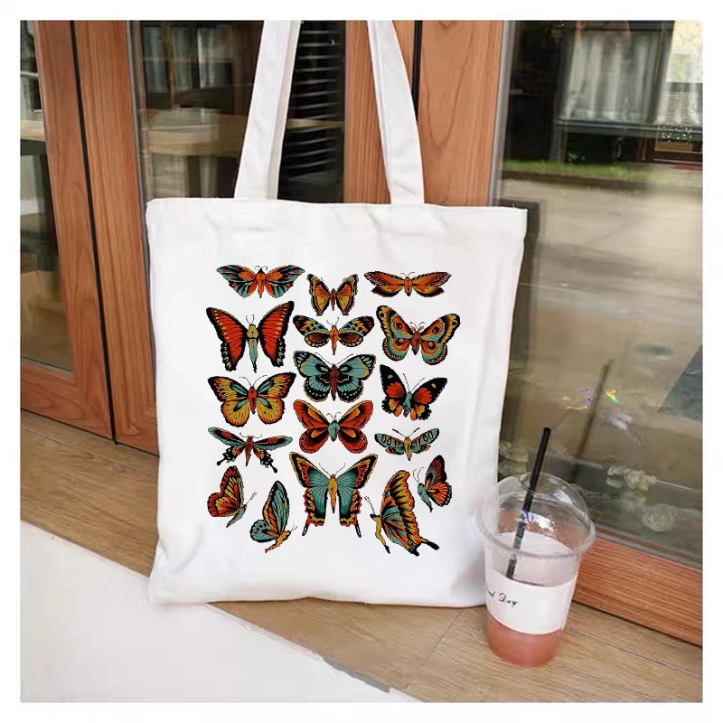 Холщовая Сумка в готическом стиле с бабочками, повседневная сумочка...