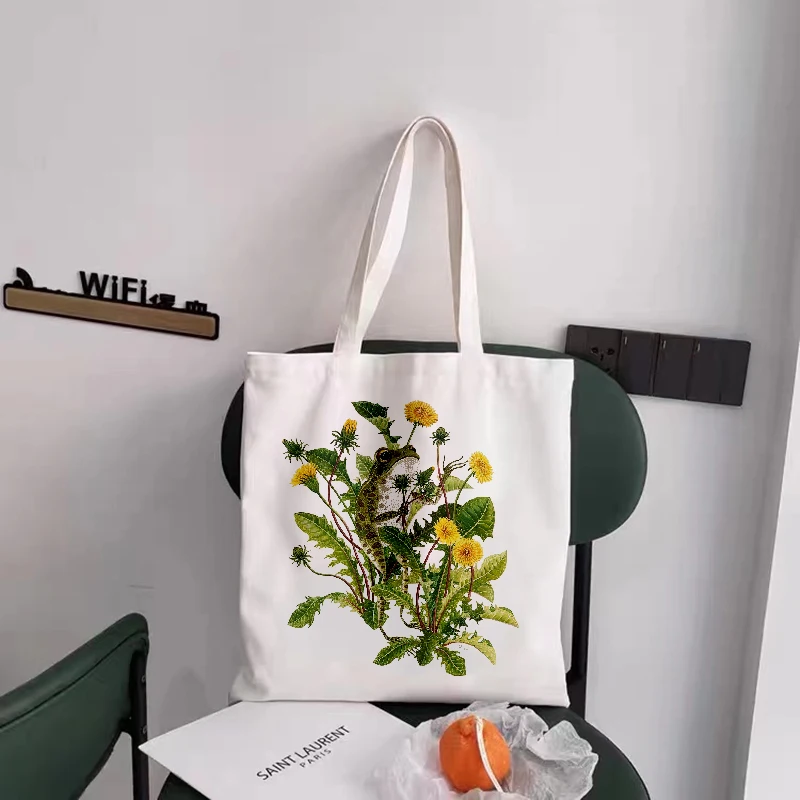 Холщовая Сумка для покупок с принтом скрипки лягушки, Женская хлопч...