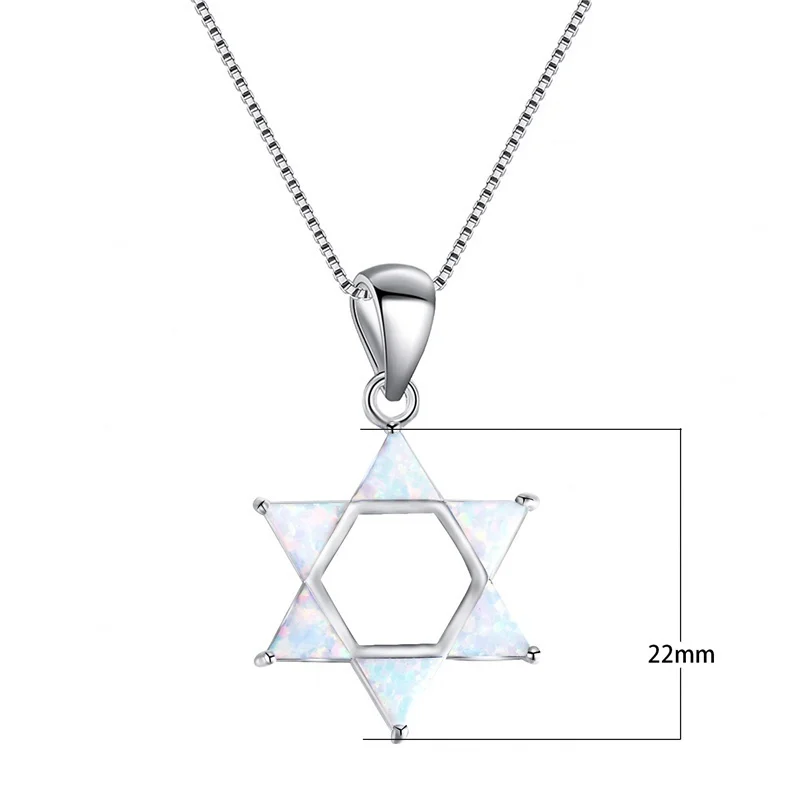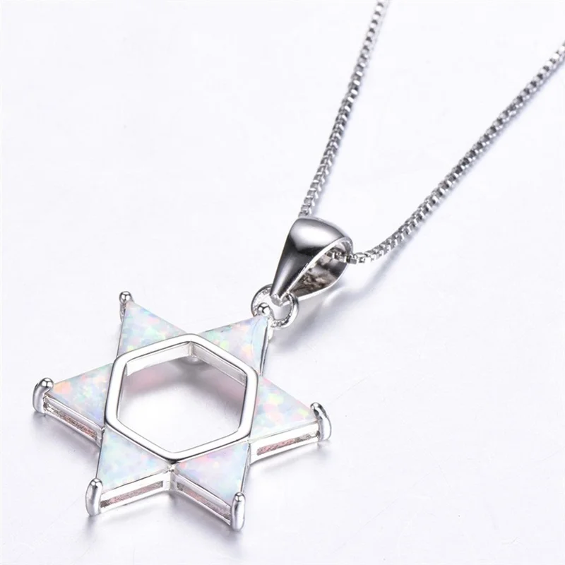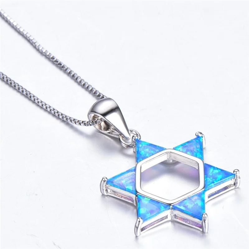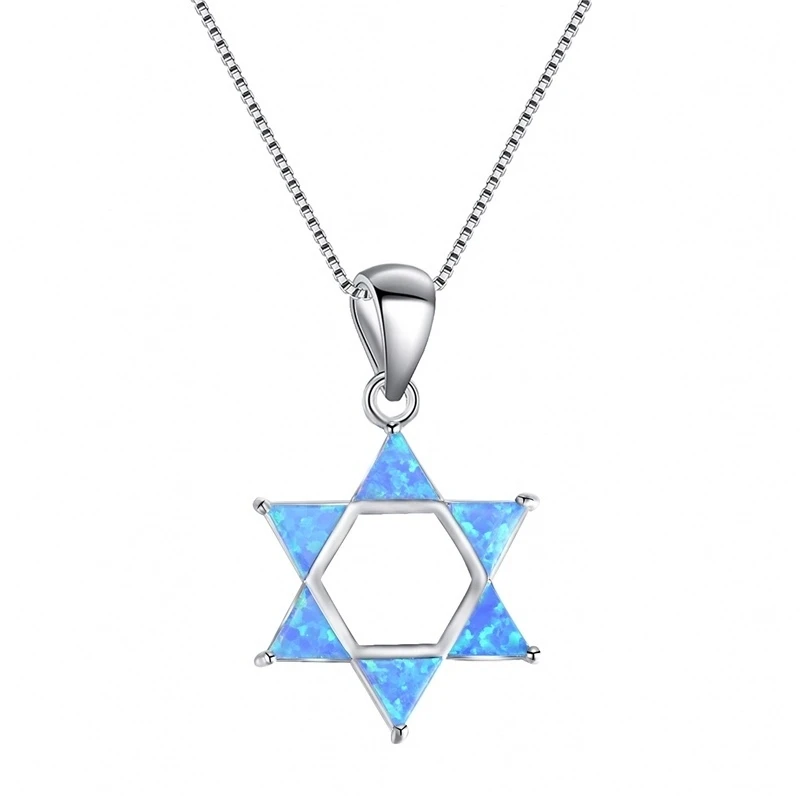 Женские кулоны гексаграмма Голубой опал Ожерелья Звезда подарок на день рождения для девушки цепочка на шею ювелирные изделия аксессуары