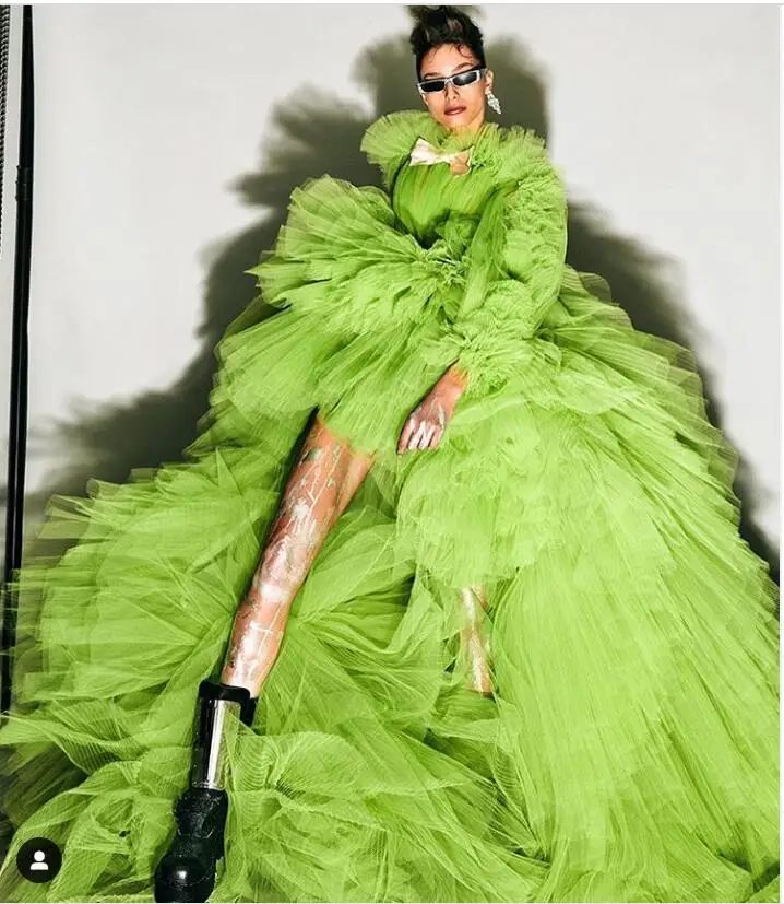 2020 Весенняя травяная зеленая многоярусная юбка из фатина с оборка...