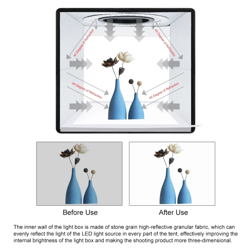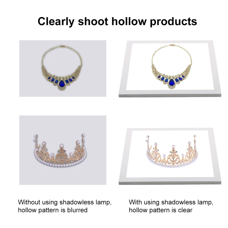 1. Этот бестеневой светильник для фото освещение кабины светильник коробка устраняет проблемы фотографирования теней, заточить контур и края продуктов и значительно сократить время потребляя редактирования фотографий. 2. Идеально подходит для фотографирования коммерческих объектов для ювелирных изделий, косметики, масштабных моделей, художественных работ, стеклянной посуды, электронных гаджетов и модных аксессуаров и т. д. 3. Ультра-тонкий и яркий, подсветка идеально ровная, супер яркая и без мерцания. 4. С портом micro USB, питание от USB 5 в постоянного тока, вы можете легко получить источник питания от компьютера или банка питания через usb-кабель. 5. Эффективная площадь: 20*20 см.