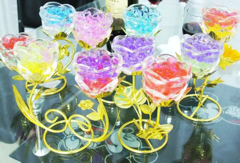 Хрустальные бусины кристально чистые после впитывания воды и имеют красивую форму. Они широко используются в: украшении аквариума, украшении подсвечника и изготавливаются в различные поделки и украшения.