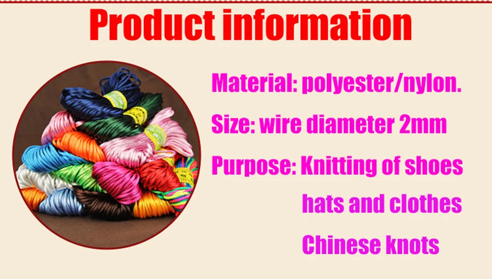 2 мм2,5 мм, разные цвета, нейлоновый китайские узлы шелковистый мак...