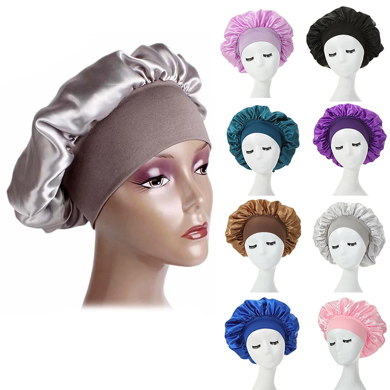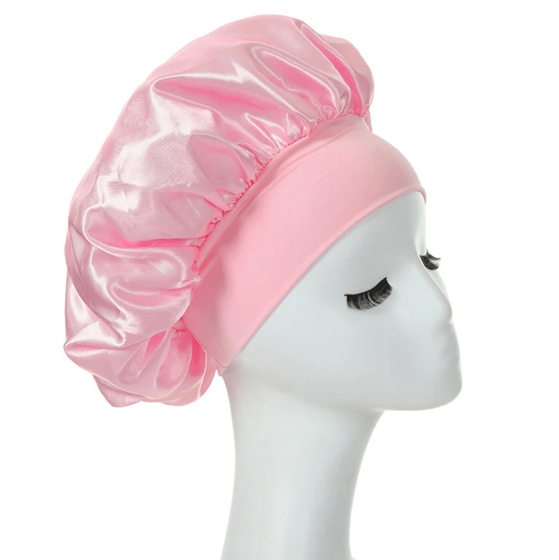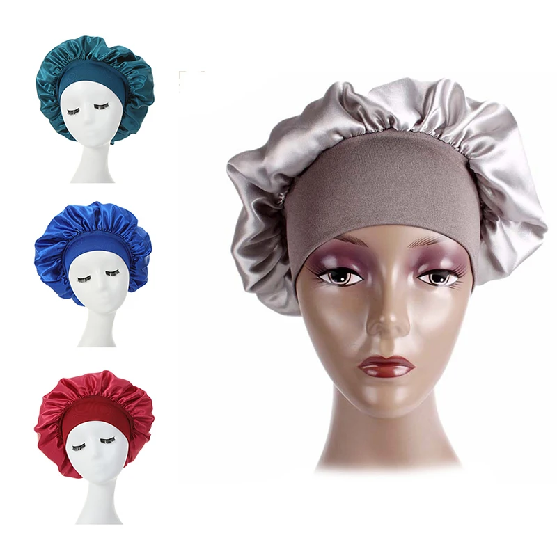 Шапочка для сна, женская, однотонная, шелковая, широкополая, из Чеп...