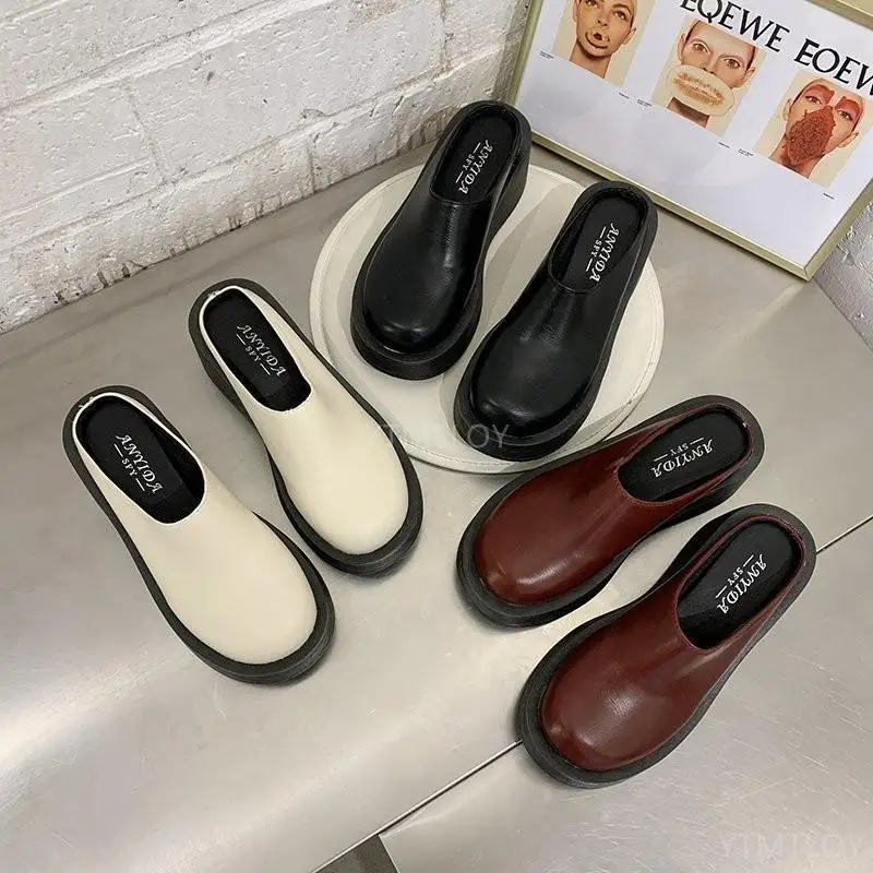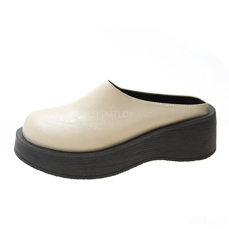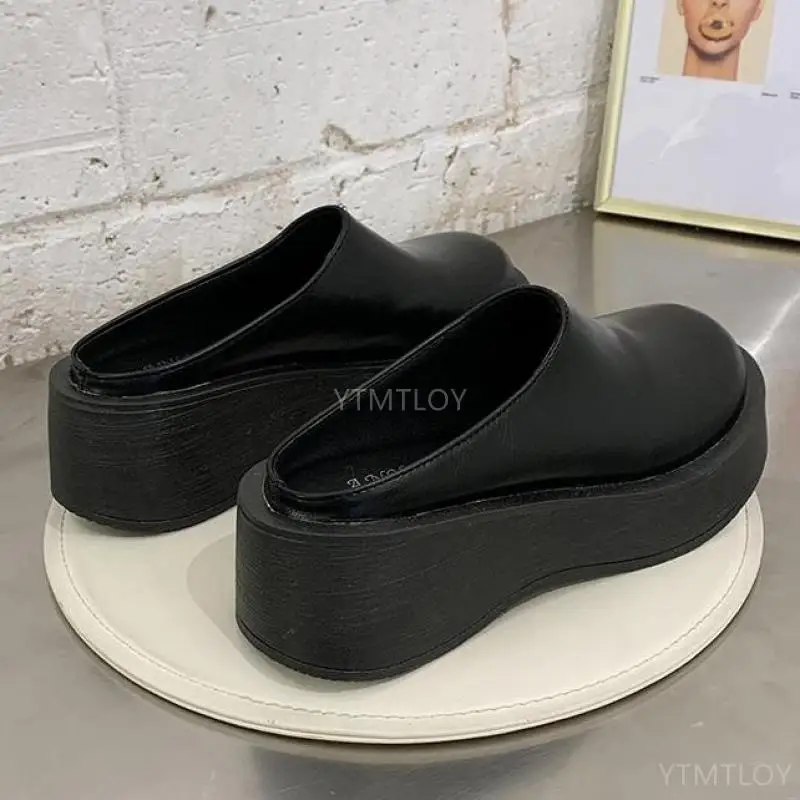 Туфли женские на высоком каблуке, шлепанцы на платформе, сланцы, на танкетке, резиновая обувь из искусственной кожи, Ретро стиль, летняя обувь