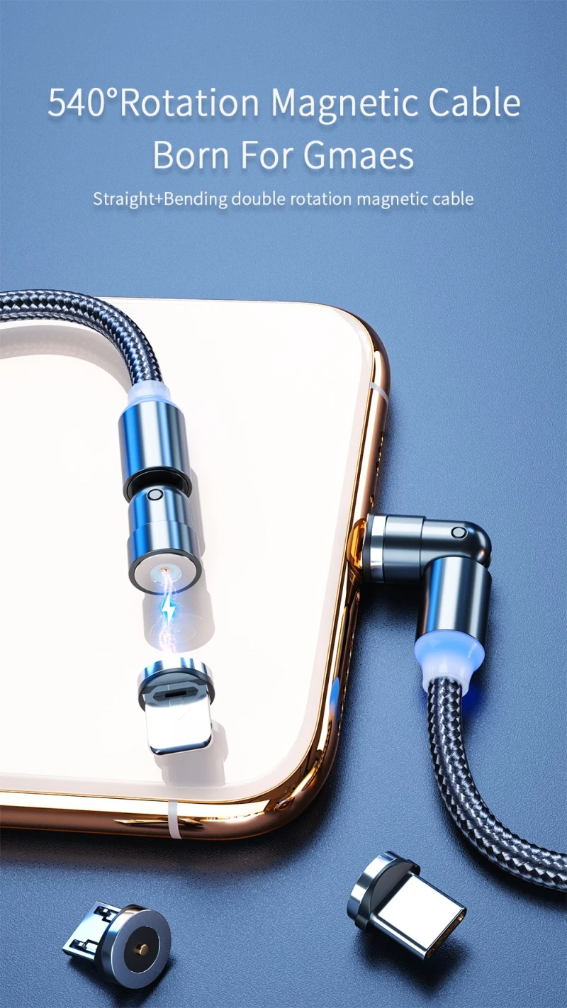 Лидер продаж, Магнитный зарядный кабель Micro USB Type-C, кабель с поворотом на 540 градусов, магнитный кабель для iPhone 11 Pro Max, кабели для передачи данных