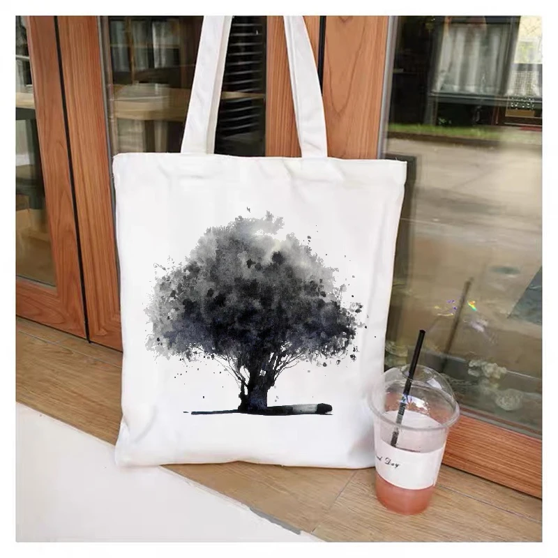 Многоразовые эко-сумки для покупок с принтом черного дерева, холщовая сумка для книг, женская складная сумка для покупок, модная женская сумка на плечо, сумка