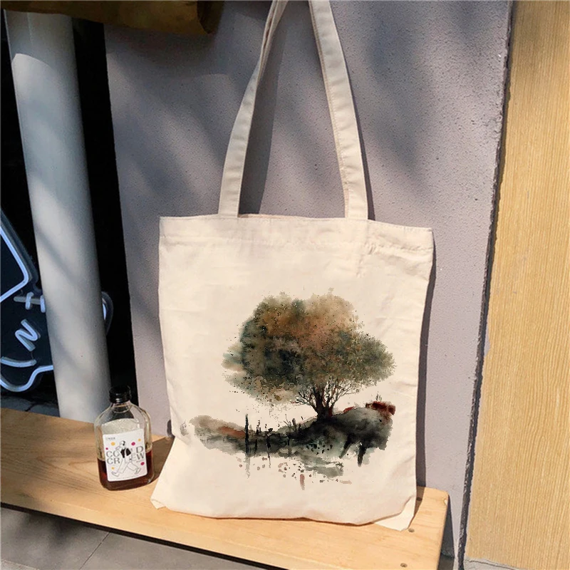 Сумка для покупок с художественным принтом, складная тканевая сумка...
