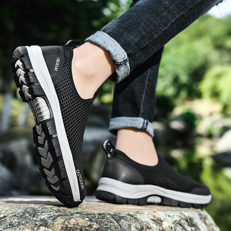 Мужские кроссовки с вулканизированной подошвой, сетчатые дышащие легкие лоферы, повседневная обувь для улицы, Нескользящие, лето 2022