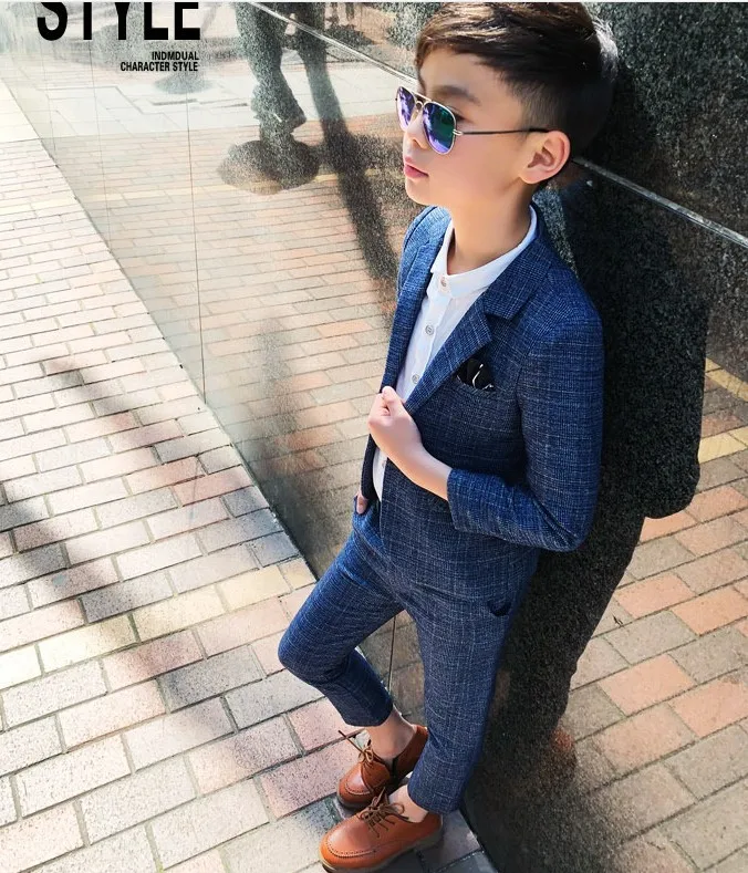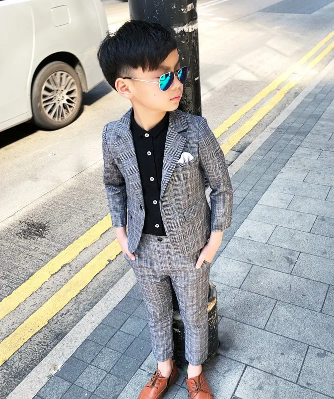 Официальные костюмы для мальчиков, пиджак в клетку + штаны, 2 предм...