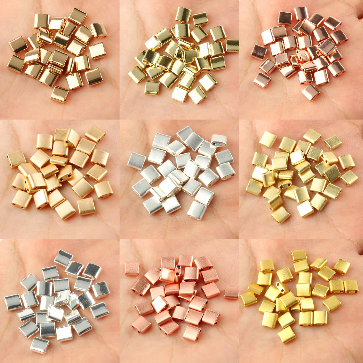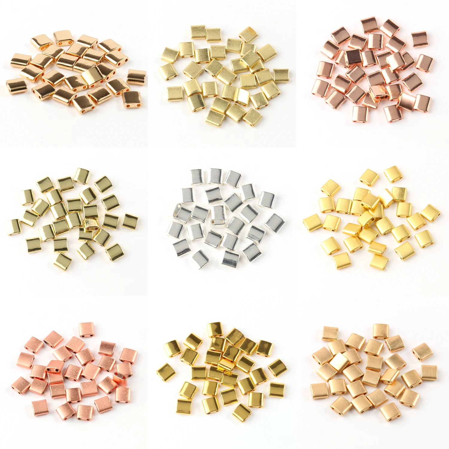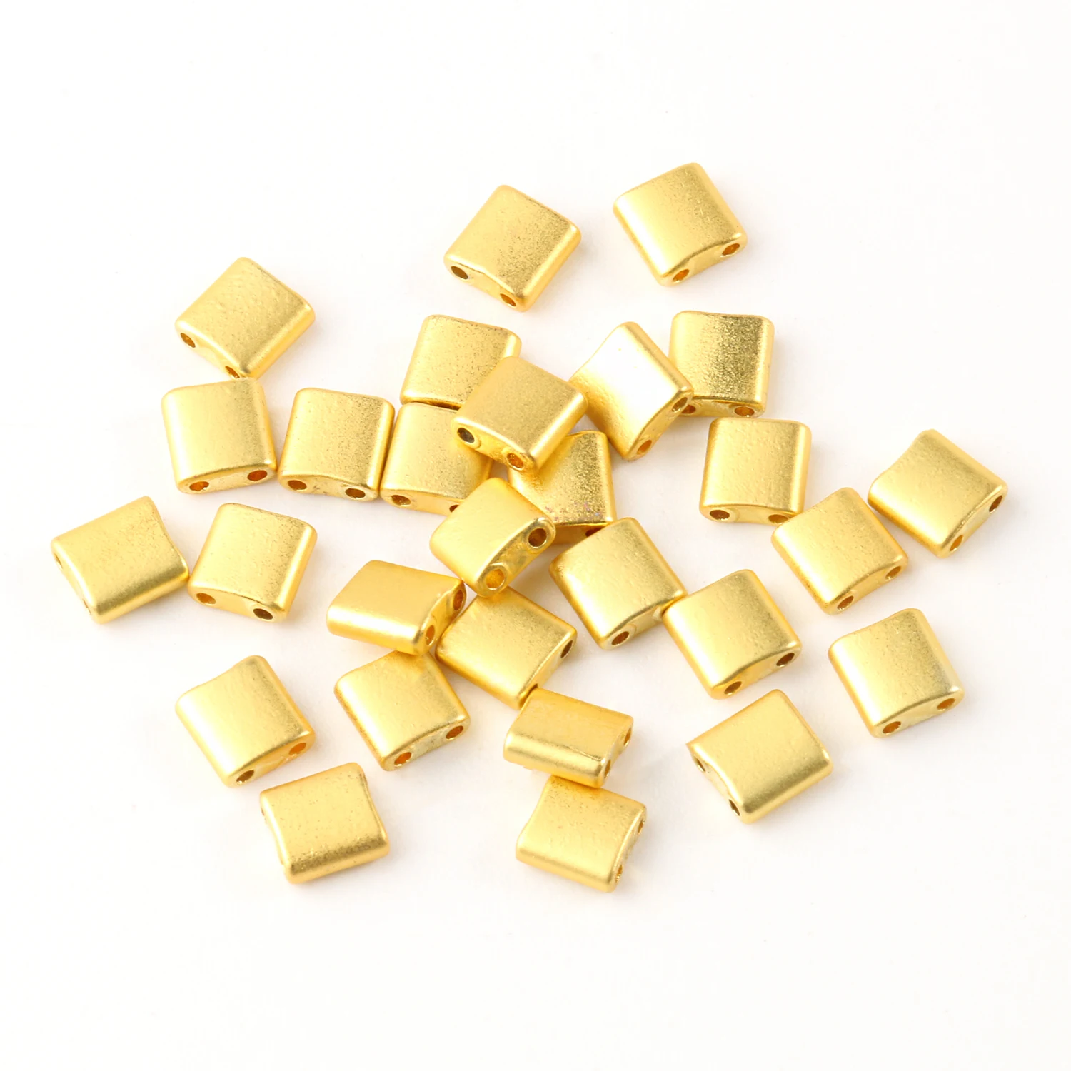 Бусины из натурального камня, матовые, с двумя отверстиями, позолоченные, гематитовые, квадратной формы, для рукоделия, изготовления ювелирных изделий, браслетов, для подарка