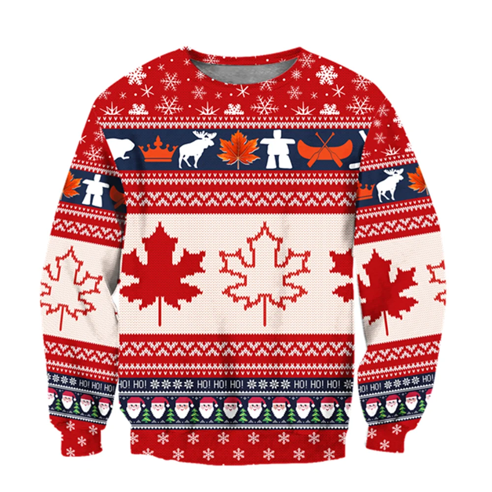 Рождественская куртка с капюшоном Canada Maple Leaf 3D для мужчин и женщин, Повседневная Уличная одежда в стиле Харадзюку, свитшот, пуловер, мужской