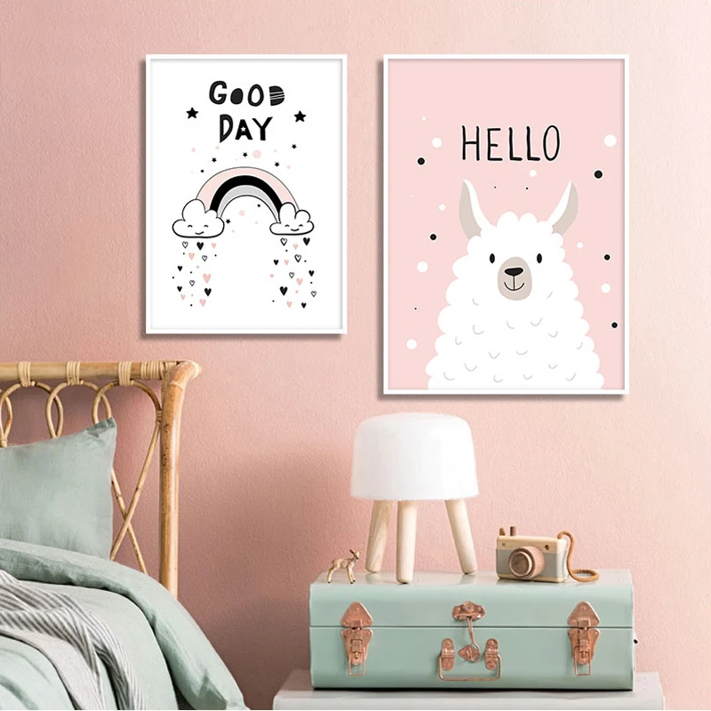 Милые Мультяшные животные Единорог Альпака плакаты в скандинавском ...