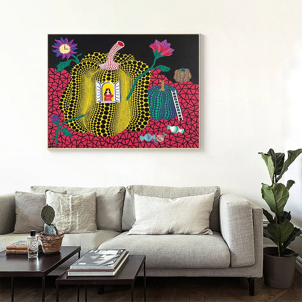 Yayoi Kusama птицы сети искусство точки холст живопись абстрактная фотография Тыква девушка постер настенный принт картины декор для спальни