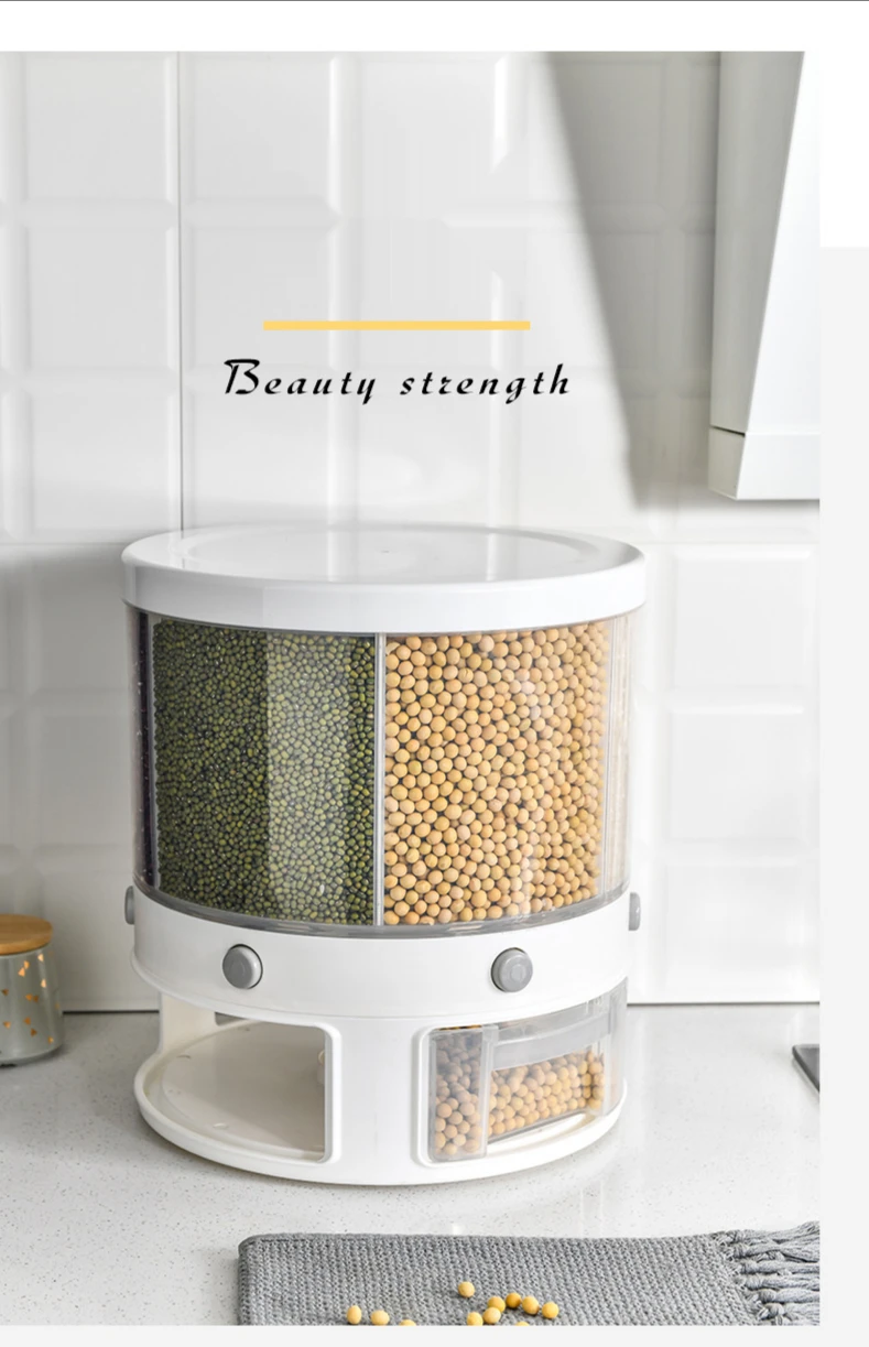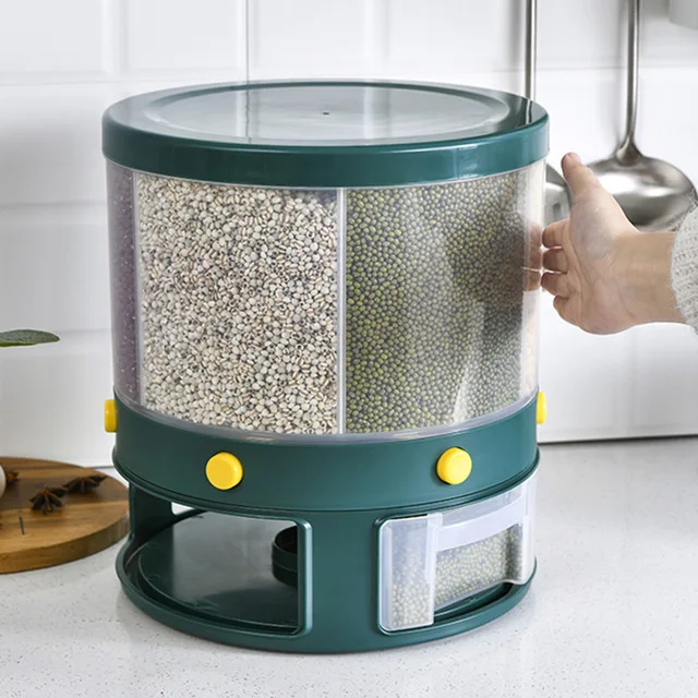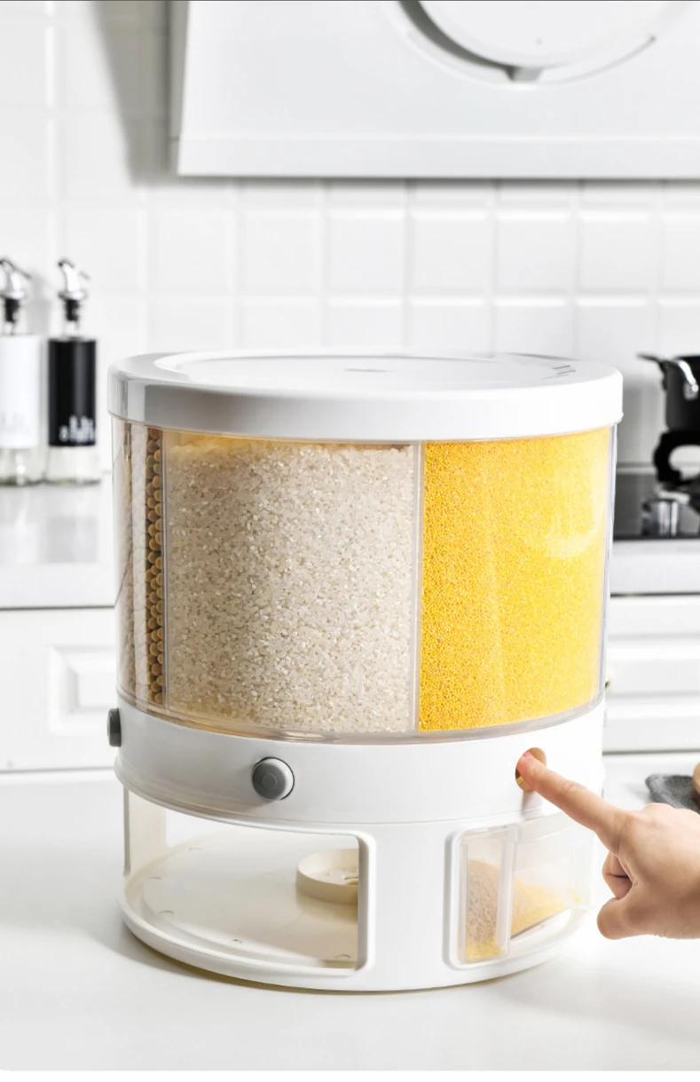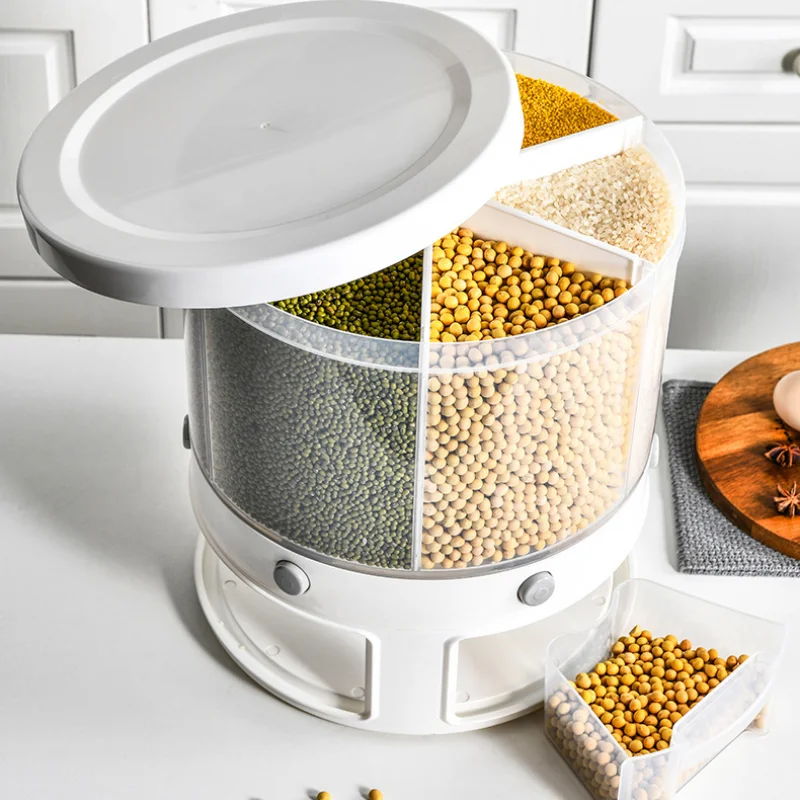 Прозрачный вращающийся кухонный Резервуар 6 в 1 для сухих зерен, герметичный разделитель ведра для риса, влагостойкий дозатор зерна
