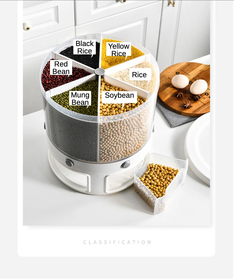 Color6-compartment rotating rice barrel