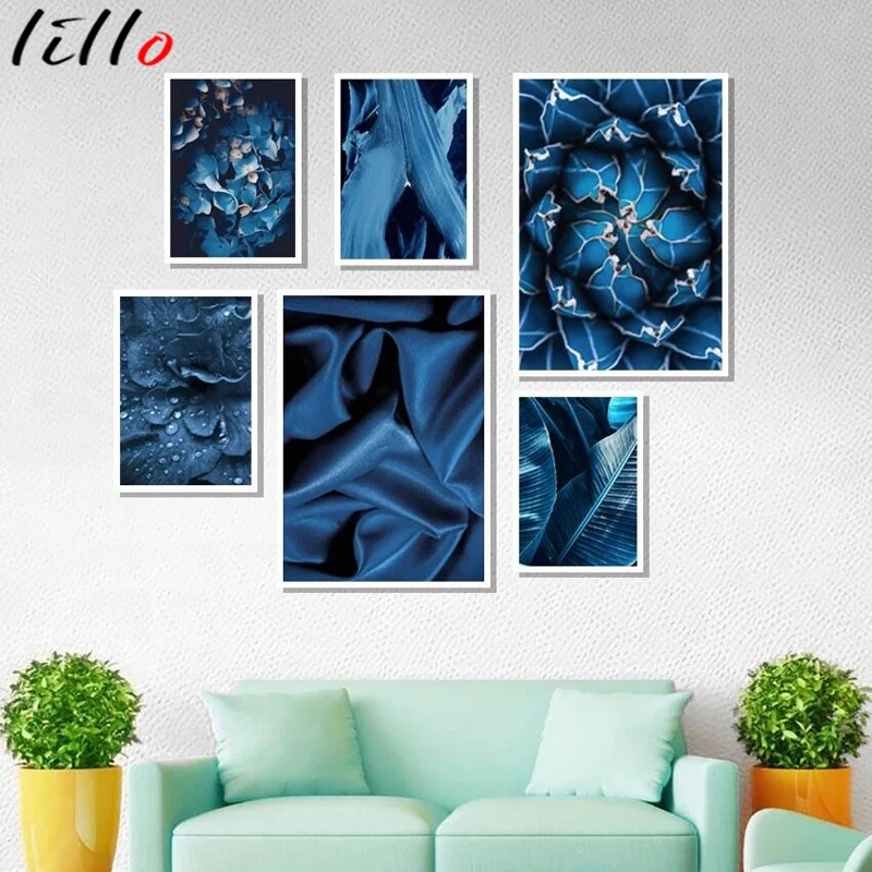 Голубые скандинавские плакаты с изображением банановых листьев суккулентов растений и цветов, настенная живопись на холсте для декора гостиной