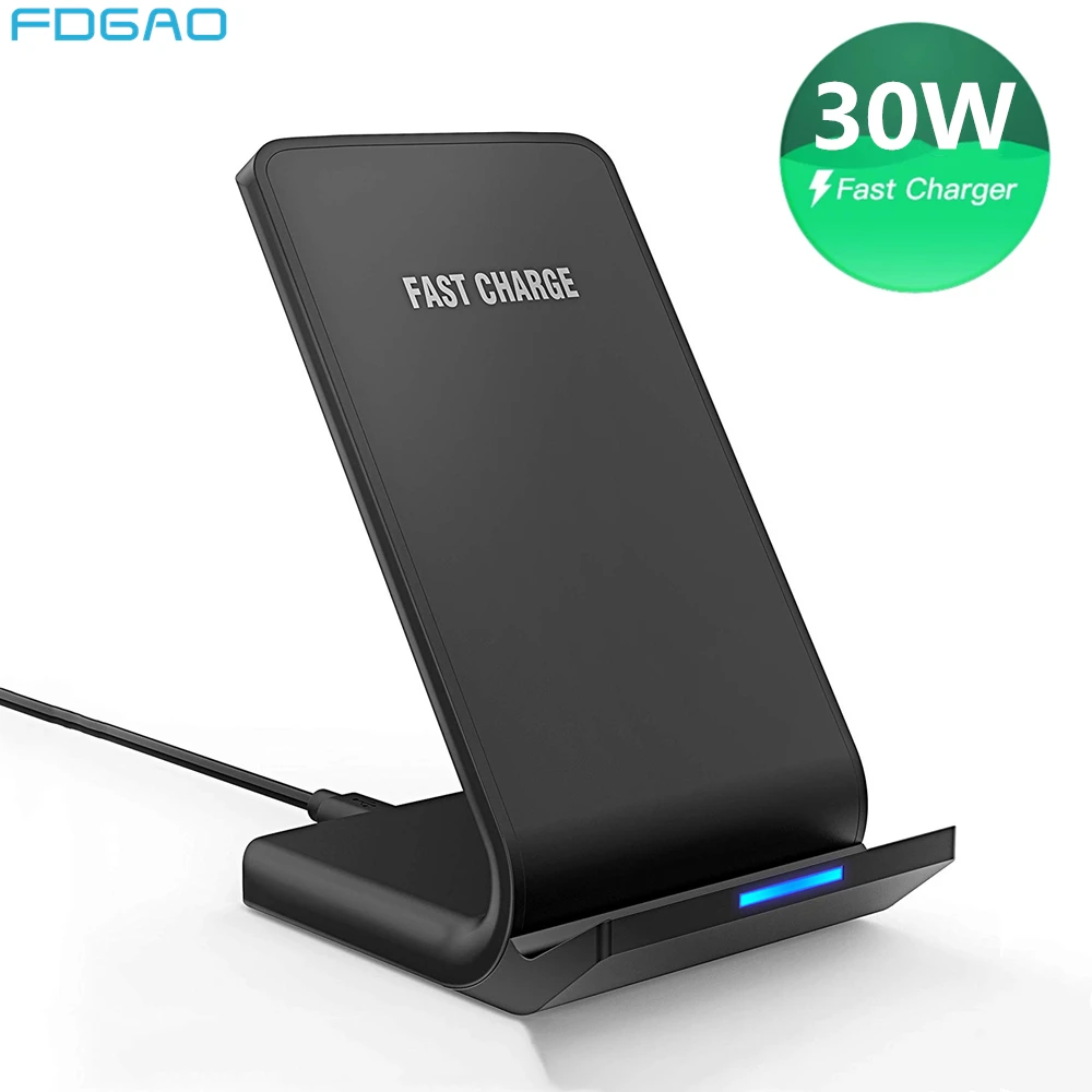 Беспроводное зарядное устройство Qi для iPhone 12 11 Pro Max XS XR X 8, 30 Вт, подставка для быстрой зарядки, док-станция, держатель для телефона Samsung S21 S20 S10
