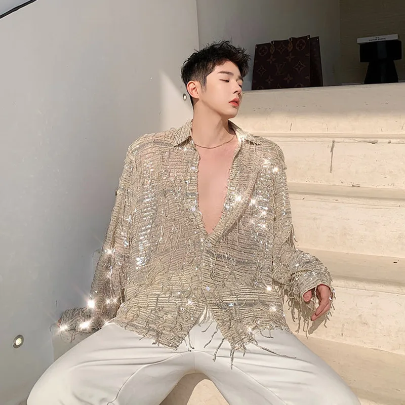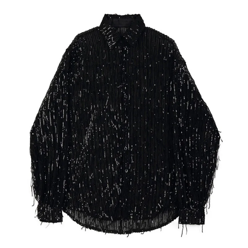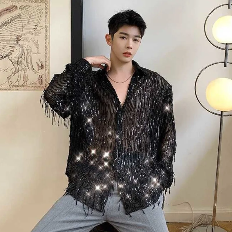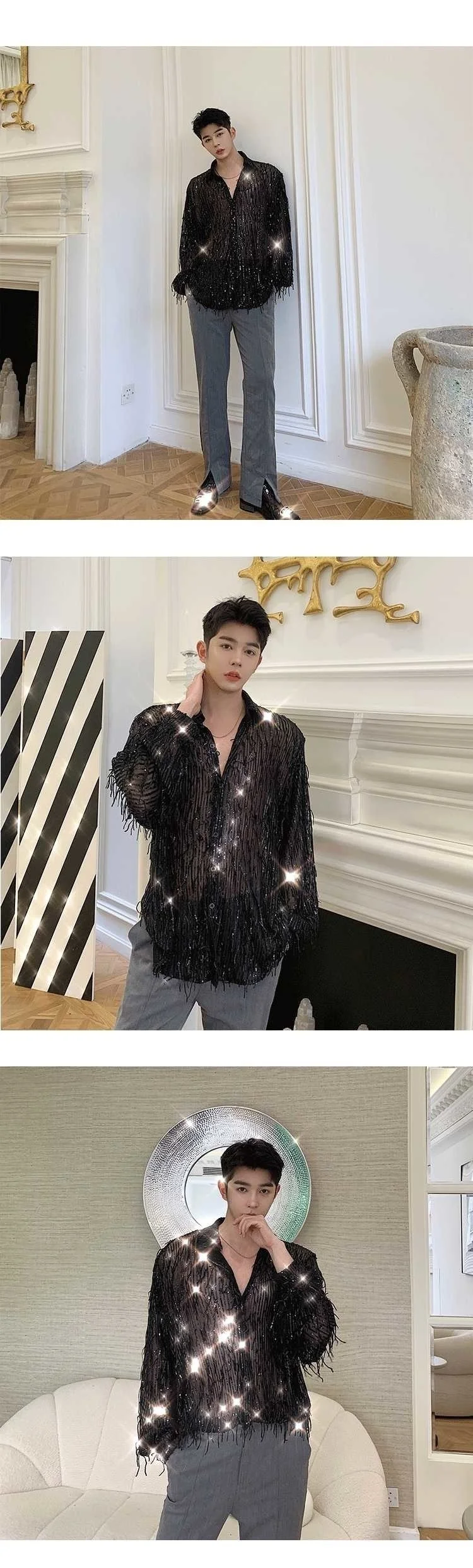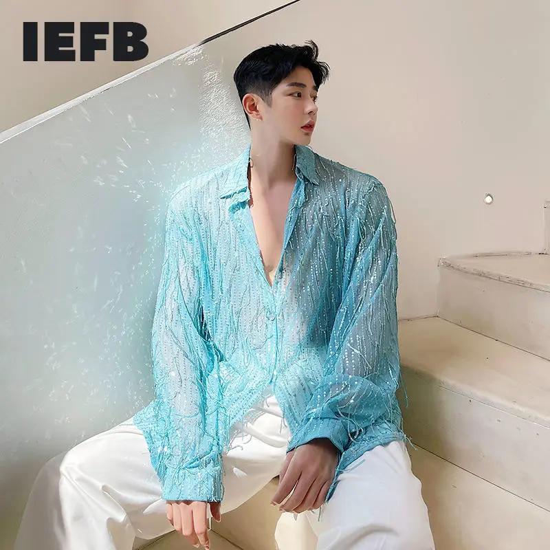 Новинка весна-осень 2022, рубашка IEFB с бахромой и блестками неправильной формы, уличная одежда, модные рубашки с длинным рукавом, мужские топы 9Y7232