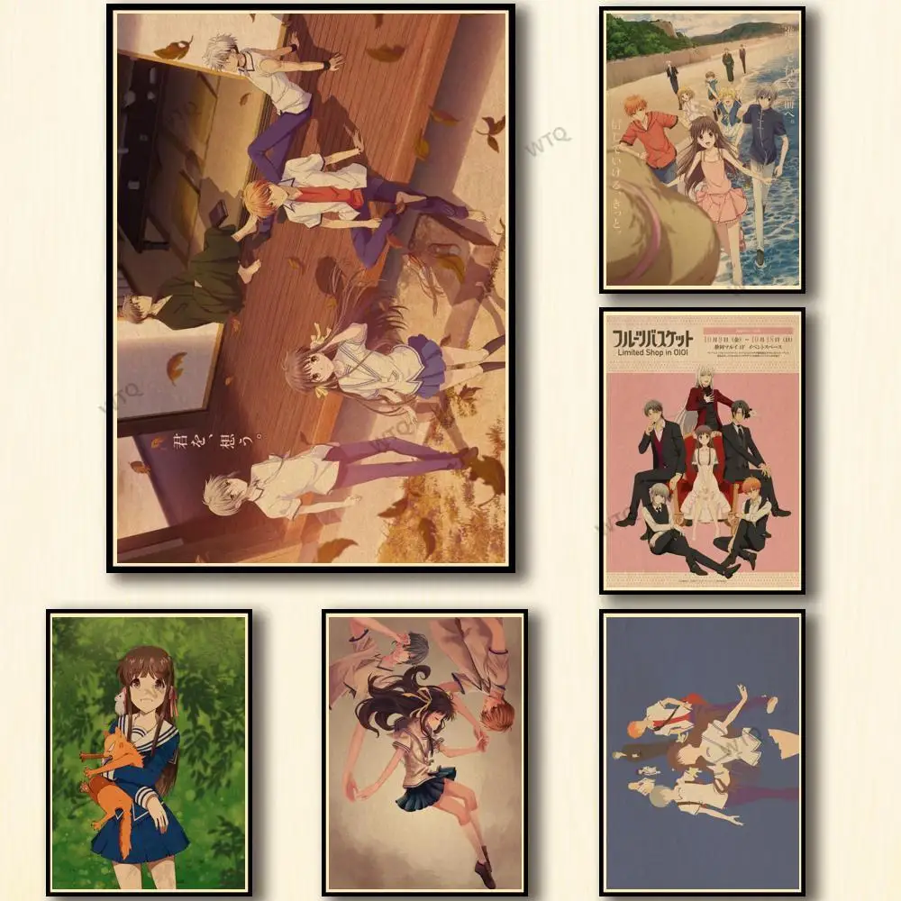 Ретро постер WTQ, аниме постеры в виде корзины фруктов, Настенный декор, холст, живопись, настенное искусство, картина, домашний декор (Размер в см)