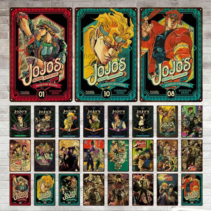 Классический Аниме-металлическая жестяная вывеска приключения Джоджо аниме винтажный металлический постер стены искусства Олово декор для Пивной бар знак на металлической пластине