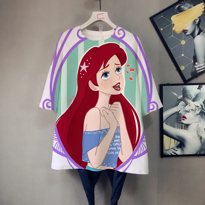 Женская футболка с коротким рукавом, летняя футболка большого размера с изображением принцессы Ариэль из мультфильма Disney в стиле Харадзюку, y2k