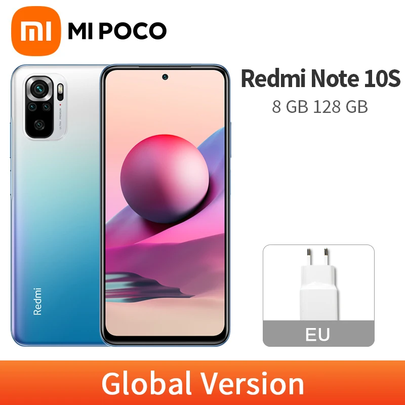 Глобальная версия сотовый телефон Xiaomi Redmi Note 10S, 8 ГБ + 128 ГБ, 64 мп, Helio G95, 33 Вт, быстрая зарядка, AMOLED дисплей, в наличии