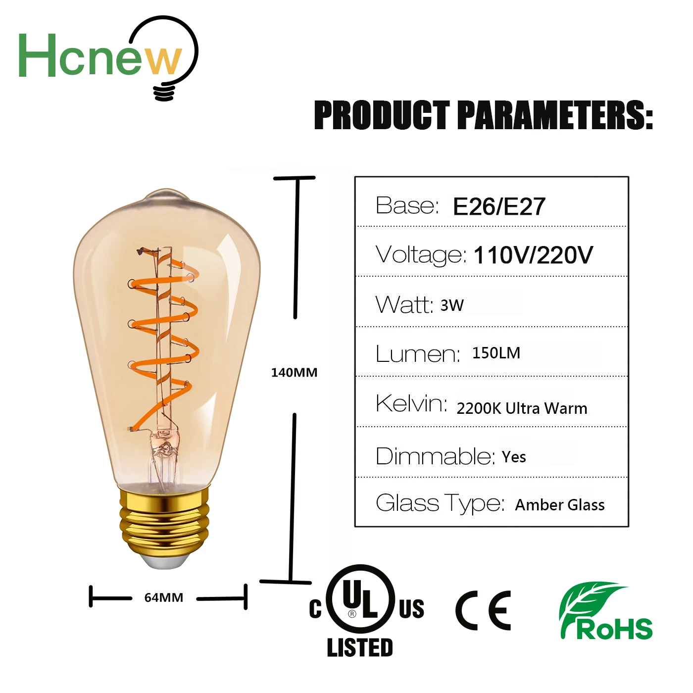 Светодиодная лампа накаливания Hcnew, ретро, C35, C35T, G40, A19, T45, ST64, G95, T20L, 4 Вт, теплый белый свет, 220 В, E14, E27, винтажная лампа Эдисона