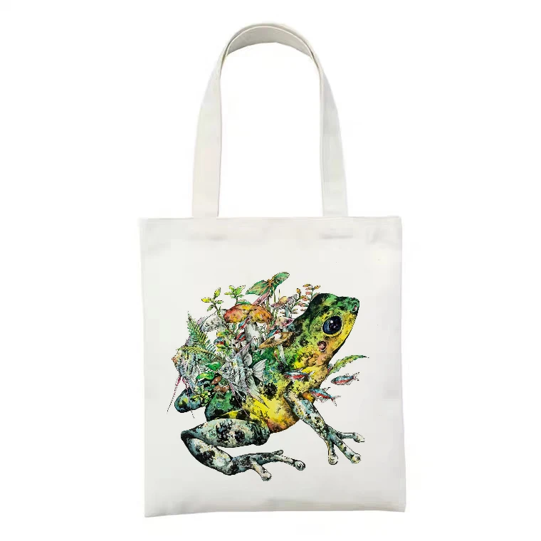 Холщовая Сумка для покупок с принтом скрипки лягушки, Женская хлопч...