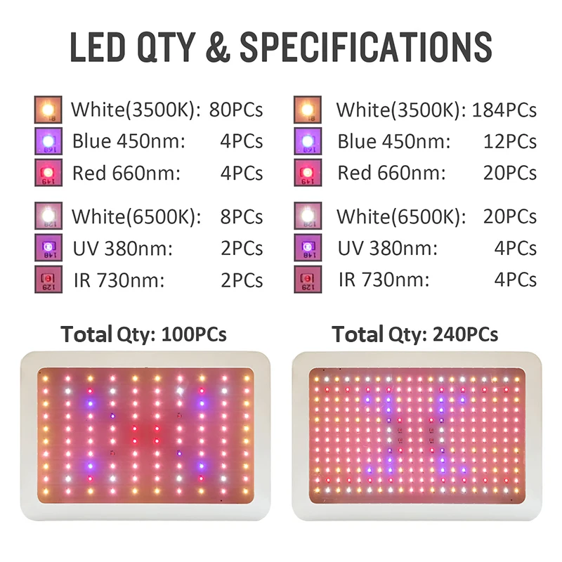 Использование супер яркий светодиодный чипы, которые с высоким Выход НПС, разработаны, чтобы держать баланс PAR/люмен Выход.
