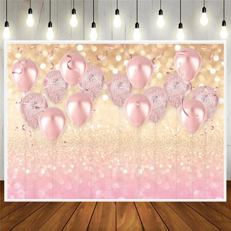 Розовое золото принадлежности для дня рождения розовый воздушный шар Блестящий боке фото фон для фотосъемки для девочки малыша девичника