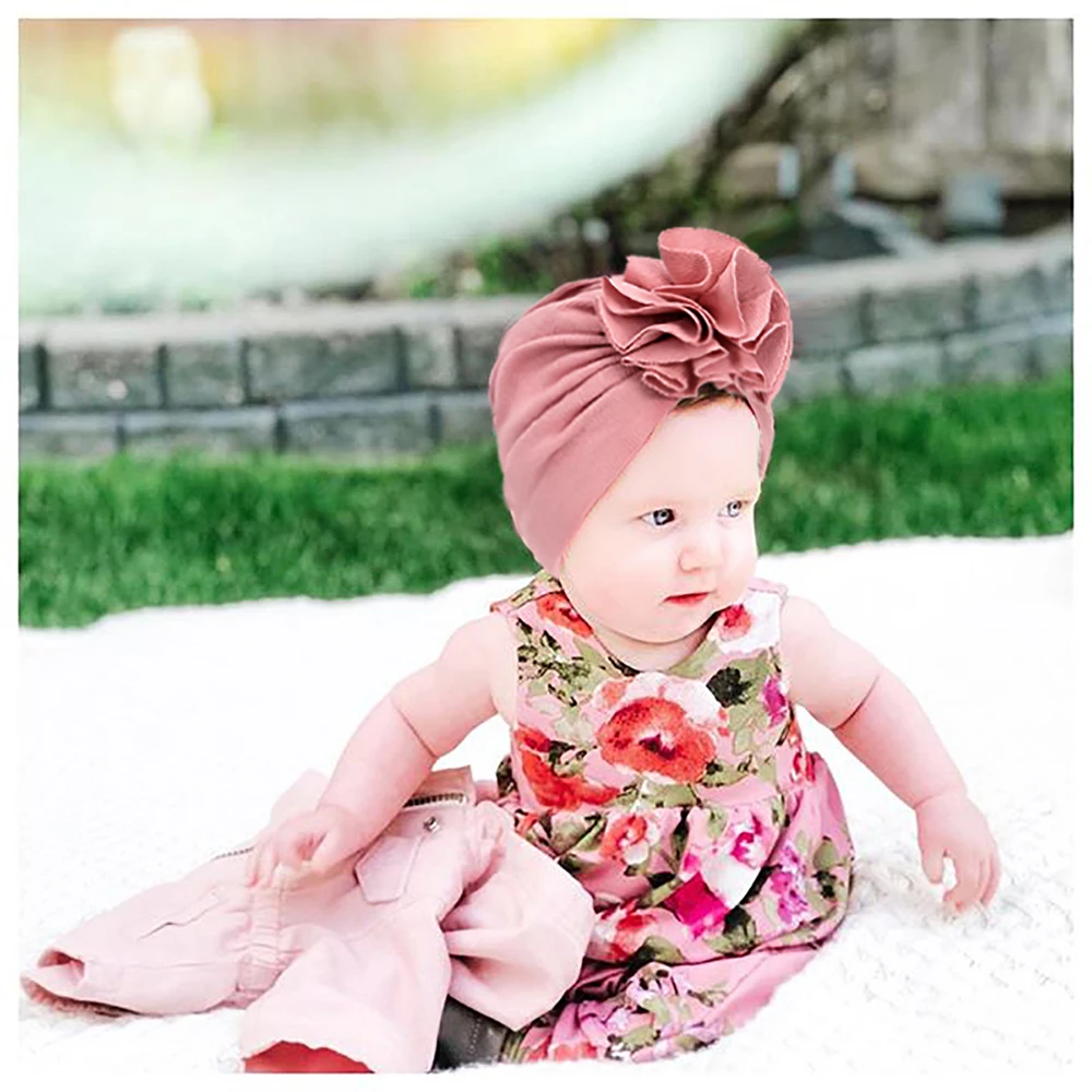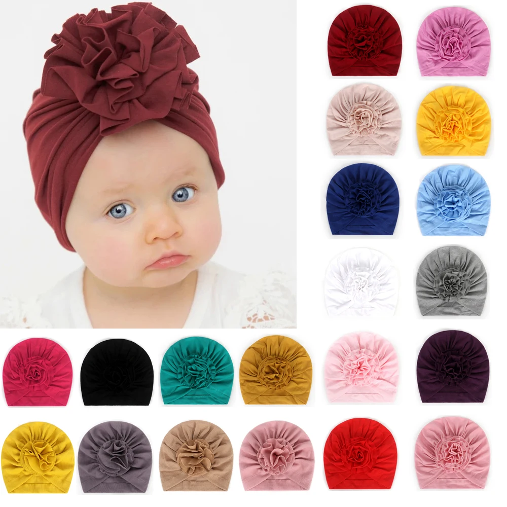 Тюрбан для новорожденных девочек, хлопковый, с милыми цветами, детская шапка для младенцев