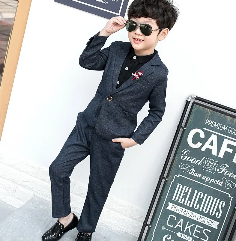 Официальные костюмы для мальчиков, куртка + штаны + цветок, комплект из 3 предметов комплект одежды для детей, деловые мужские костюмы, костюмы Производительность вечерний смокинг, платье детское платье на свадьбу, костюм