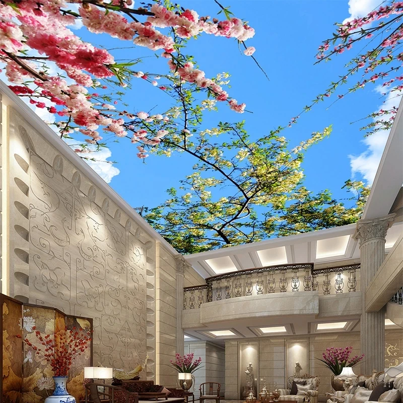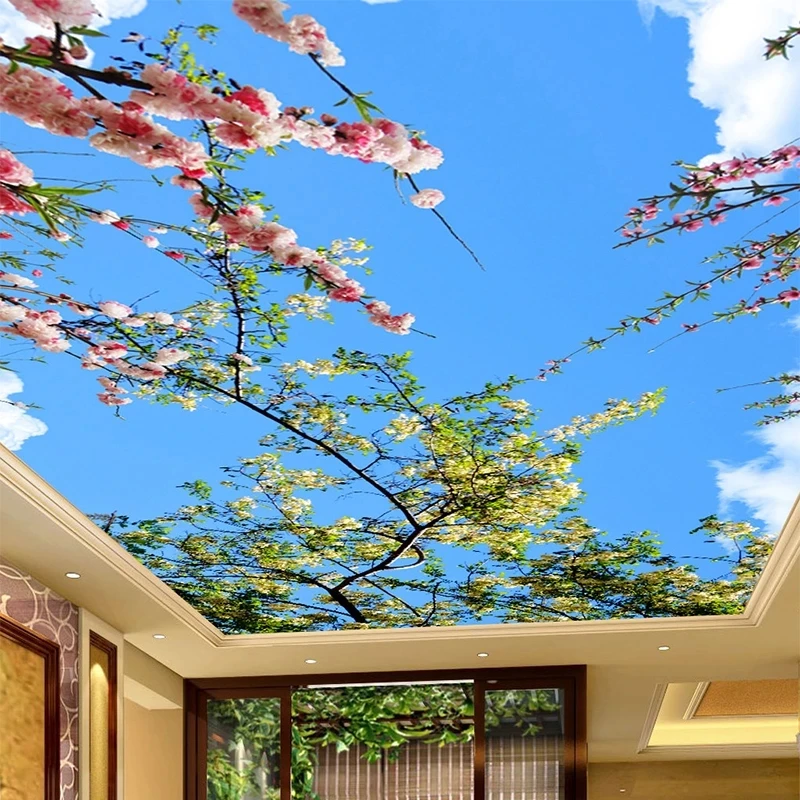 Настенная живопись на заказ, самоклеящиеся 3D-обои для потолка, цветок персика, гостиной, водонепроницаемое домашнее украшение