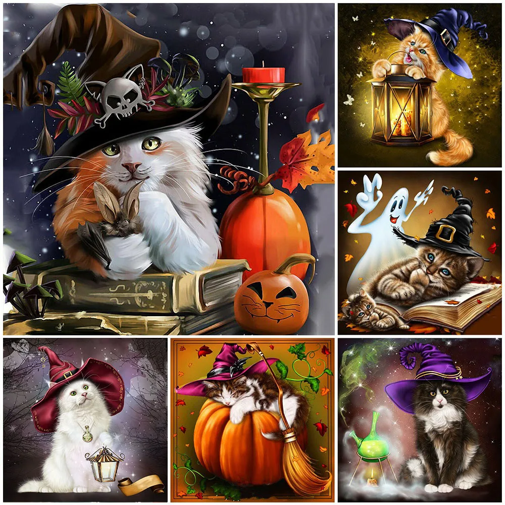 MEIVN DIY алмазная живопись кот и тыквы полная квадратная Алмазная Вышивка животного на Хэллоуин, платья с Стразы картины ремесла комплект