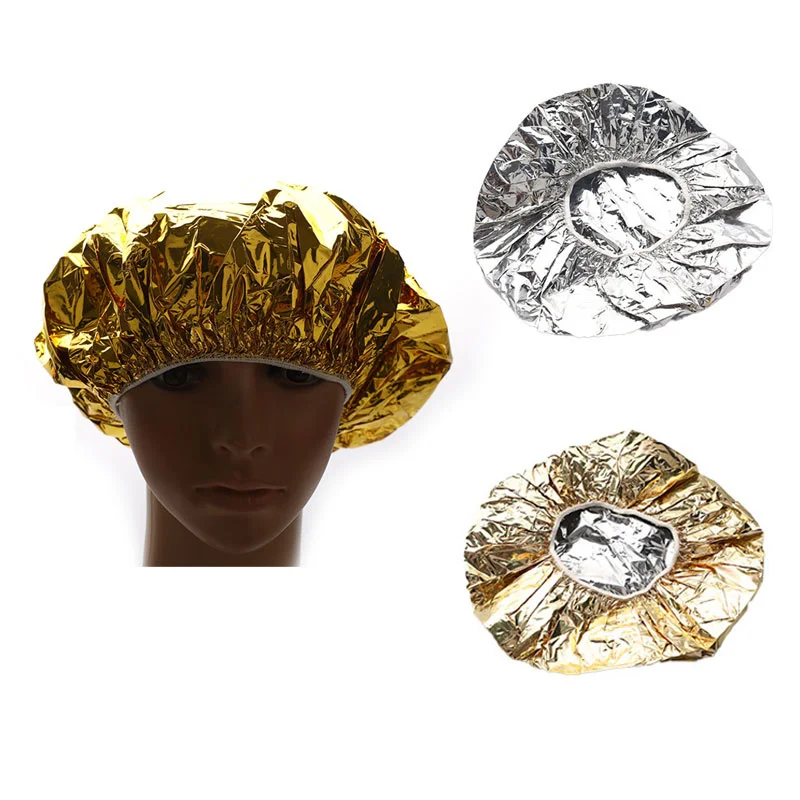1 шт., золотая, серебряная шапочка для душа, теплоизоляционная алюминиевая шляпа с фольгой эластичная шапочка для купания для женщин, Парикмахерская, ванная комната