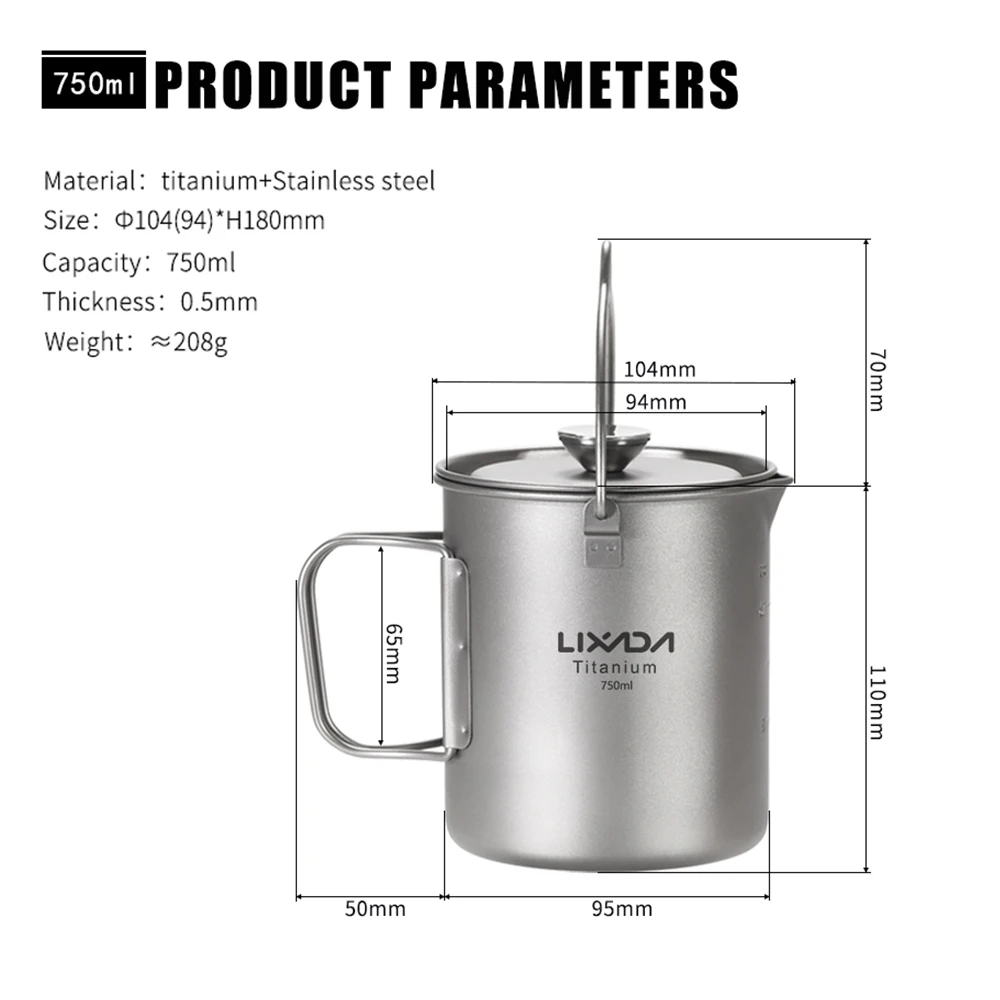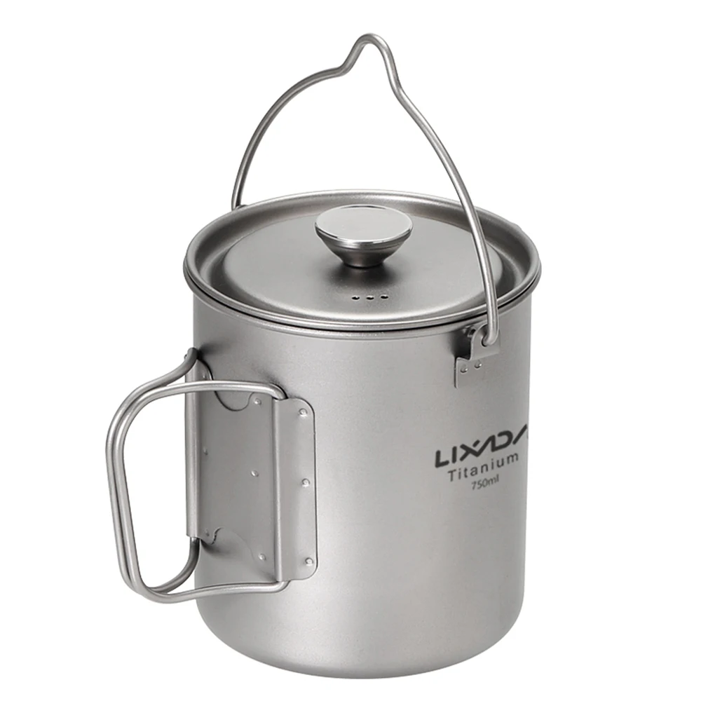 Френч-пресс Lixada, титановая кофейная чашка, 750 мл, с крышкой, для кемпинга, походный котелок для варки пищи
