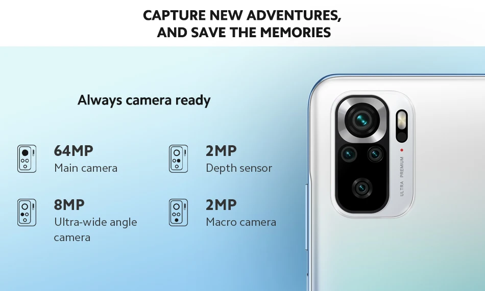 Основная камера 64 мп | Датчик глубины 2 МП | Ультраширокоугольная камера 8 МП | Макро Камера 2 МПКамера Quad готова фотографировать лучшие моменты в течение дня. Легко запечатлевать что-либо от отдаленных пейзажей до детальных снимков крупным планом.