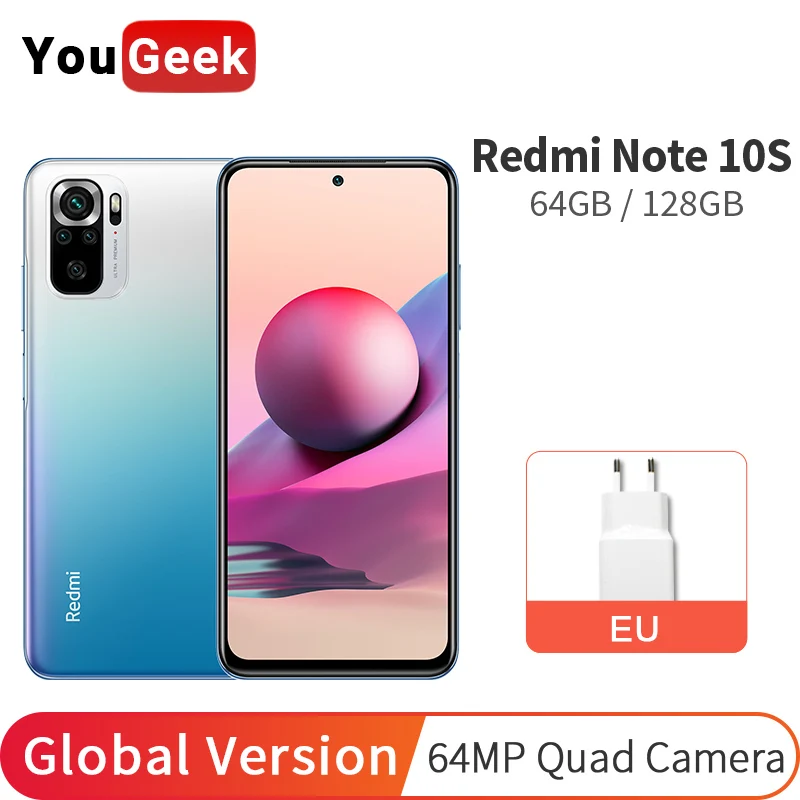 Глобальная версия Redmi Note 10S с оригинальным зарядным устройством 33W EU.