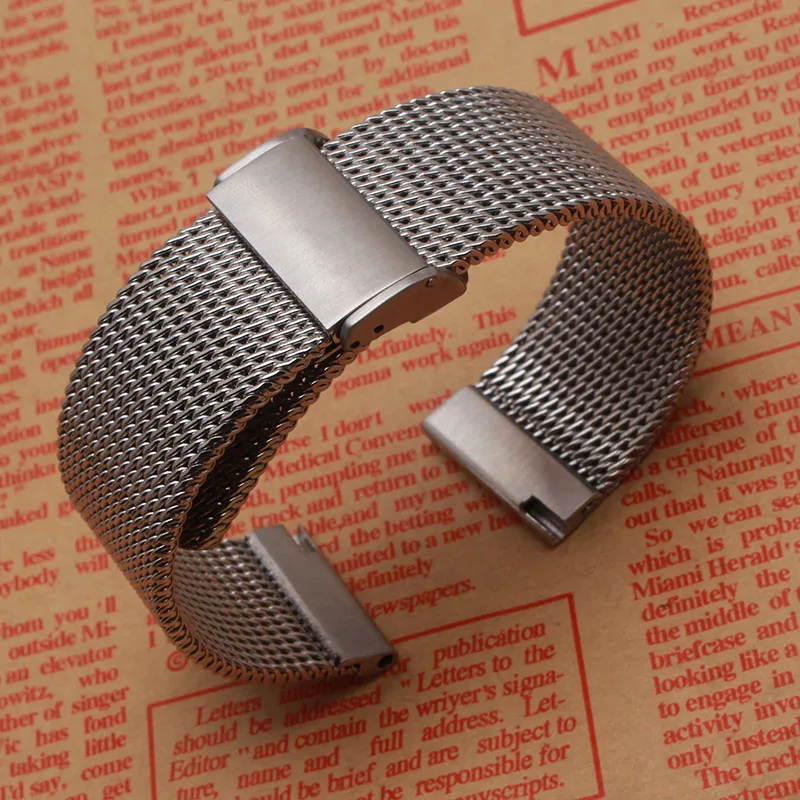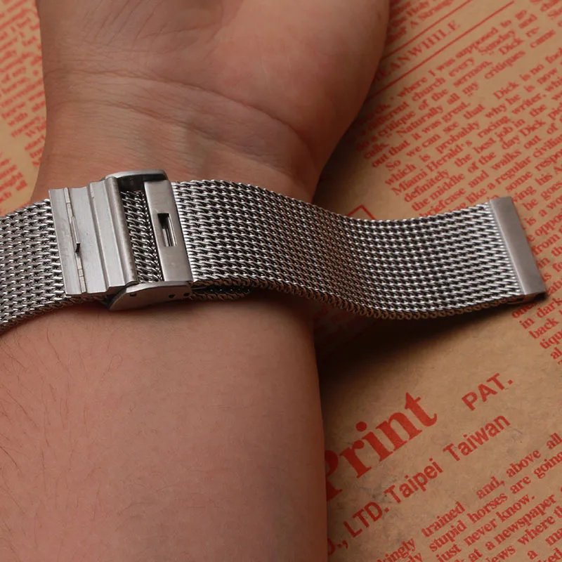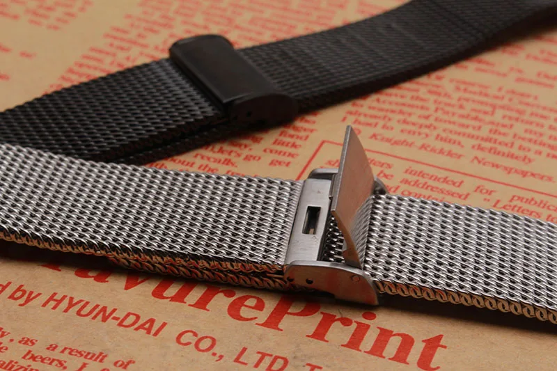 Ремешок мужской из нержавеющей стали, металлический черный браслет с сеткой акулы, аксессуары для наручных часов Huawei 20 мм 22 мм 24 мм