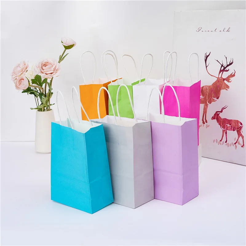 1 шт.лот цветной пакет из крафт-бумаги с ручками 21x15x8 см праздничный Подарочный пакет высококачественные сумки для покупок