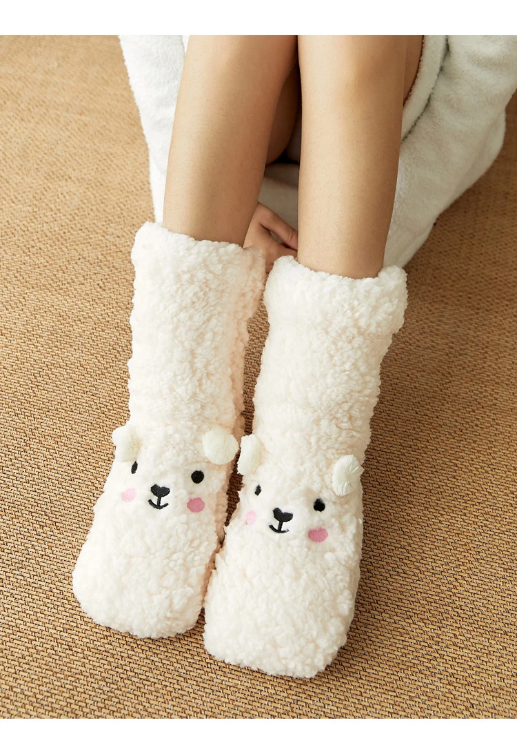 Рождественские чулки, женские хлопковые носки с мультяшным дизайном, подарок на Новый год, милые носки, теплые Нескользящие женские носки для девочек